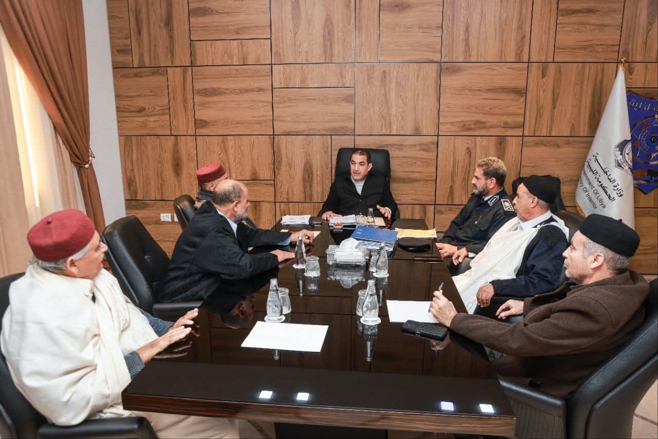 عقد وزير الداخلية - رئيس لجنة المصالحة بمدينة الكفرة بين قبيلتي الزوية والتبو اللواء "عصام أبوزريبة" اجتماعًا مع أعضاء لجنة المصالحة، وذلك في إطار جهود معاليه الرامية إلى تعزيز السلم الاجتماعي ودعم الاستقرار الأمني
