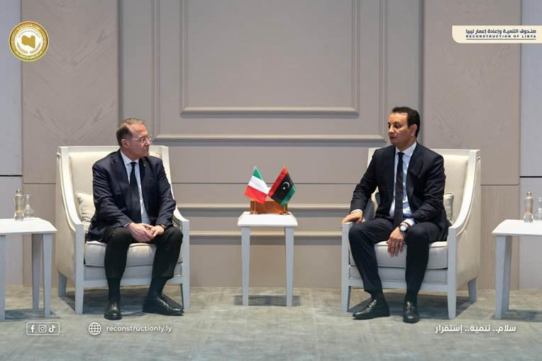 استقبل المهندس بلقاسم خليفة حفتر مدير عام صندوق التنمية وإعادة إعمار ليبيا وفدا إيطاليا رفيع المستوى ضم نائب وزير خارجية الجمهورية الإيطالية وسفيرها وقنصلها العام إلى جانب رئيس مجلس إدارة شركة GKSD الدكتور كمال الغريبي حيث عقد اجتماع رسمي خُصص لمناقشة مشاريع استراتيجية بالتعاون مع الشركة بحضور عدد من المسؤولين ومديري الإدارات ونخبة من المهندسين المختصين وعقب الاجتماع جرى التوقيع على عقود تشغيل وإدارة المركز الوطني للأورام وصيانة وتشغيل مركز بنغازي الطبي وإنشاء وتشغيل مصنعين لإعادة تدوير القمامة والمخلفات وإنتاج الطاقة الكهربائية وتأتي هذه الخطوة في إطار دعم الشراكات الدولية وتعزيز كفاءة القطاع الصحي وتطوير مشاريع البنية التحتية والخدمات الحيوية بما يسهم في الارتقاء بمستوى الخدمات ودفع عجلة التنمية المستدامة في مدينة بنغازي
