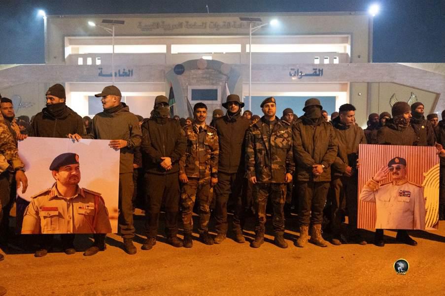 وصلت الدفعة الجديدة من منتسبي الكتيبة 23 صاعقة القوات الخاصة إلى أرض الوطن عقب استكمالهم برنامجا تدريبيا متقدما في جمهورية بيلاروسيا وسط استقبال حافل من أهاليهم وذويهم ويأتي هذا البرنامج في إطار حرص القيادة العامة للقوات المسلحة على تطوير وحداتها ورفع كفاءة منتسبيها بما يضمن تنفيذ المهام الموكلة إليهم بدقة واحترافية ويعكس هذا التدريب المتقدم التزام المؤسسة العسكرية بتأهيل عناصرها وفق أعلى المستويات الفنية والبدنية كما يرسخ جاهزية القوات الخاصة لمواجهة مختلف التحديات الميدانية ويؤكد استمرار العمل على تعزيز قدرات الجيش الليبي بما يخدم أمن الوطن واستقراره.