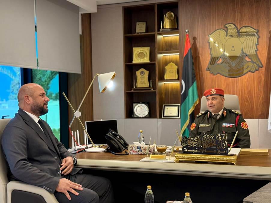 استقبل الأمين العام للقيادة العامة الفريق أول خيري التميمي وزير الصناعة والمعادن المهندس أمحمد عبدالقادر في مقر القيادة العامة حيث تناول اللقاء عددا من الموضوعات المتعلقة بالقطاع الصناعي وآليات دعم وتطوير الصناعة الوطنية بما يسهم في تعزيز القدرات الإنتاجية وتحقيق الاستفادة من الإمكانيات المتاحة ودعم مسارات التنمية الاقتصادية كما جرى التأكيد على أهمية التنسيق والتكامل المؤسسي بين الجهات ذات العلاقة وتهيئة البيئة المناسبة للنهوض بالقطاع الصناعي بما يخدم المصلحة العامة ويسهم في دعم الاستقرار والتنمية المستدامة وشدد الجانبان في ختام اللقاء على استمرار التواصل والتعاون المشترك بما يعزز العمل الوطني ويدعم جهود الدولة في تطوير القطاعات الإنتاجية.