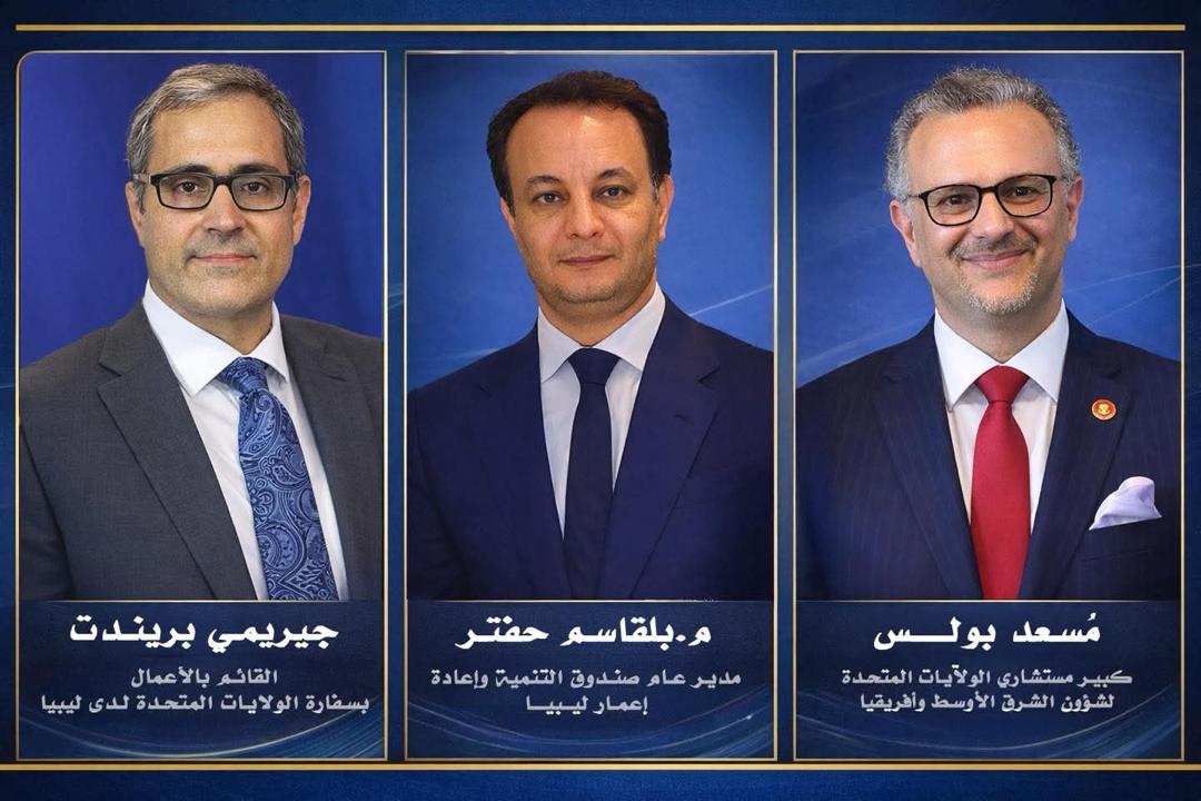 أجرى المهندس بالقاسم خليفة حفتر، المدير العام لصندوق التنمية وإعادة إعمار ليبيا، اتصالًا مثمرًا مع سعادة السيد مسعد بولس، كبير مستشاري الولايات المتحدة الأميركية لشؤون الشرق الأوسط وأفريقيا، بمشاركة السيد جيريمي بريندت القائم بالأعمال بسفارة الولايات المتحدة لدى ليبيا وتناول الاتصال أهمية اعتماد ميزانية موحدة لعام 2026، بما يسهم في تعزيز الاستقرار المالي للدولة، والحفاظ على قيمة الدينار الليبي، ودعم القدرة الشرائية للمواطنين، إلى جانب تمكين تنفيذ مشاريع التنمية والإعمار في مختلف أنحاء البلاد كما أكد الجانب الأمريكي تقديره للدور الحيوي الذي يقوم به صندوق التنمية وإعادة إعمار ليبيا في دفع عجلة التنمية، مشددًا على أهمية استمرار التنسيق لدعم مسارات الاستقرار الاقتصادي وتحقيق التنمية المستدامة ويأتي هذا التواصل في إطار تعزيز الشراكات الدولية الداعمة لجهود الإعمار، وترسيخ بيئة اقتصادية أكثر استقرارًا تخدم مصالح الشعب الليبي