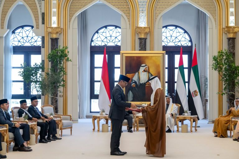 شهد الشيخ محمد بن زايد آل نهيان، رئيس دولة الإمارات، وبرابوو سوبيانتو رئيس جمهورية إندونيسيا،إعلان عدد من الاتفاقيات ومذكرات التفاهم بين دولة الإمارات وإندونيسيا تهدف الاتفاقيات إلى توسيع مجالات التعاون بين القطاعين الحكومي والخاص في البلدين في ظل العلاقات الاستراتيجية التي تجمعهما، وذلك في إطار زيارة دولة يقوم بها الرئيس الإندونيسي إلى دولة الإمارات وشملت الاتفاقيات والمذكرات التي أعلنها الجانبان مجالات التكنولوجيا، والطاقة المتجددة، والصحة، والثقافة والسياحة، والتعدين، والبنية التحتية، والتطوير والتحديث الحكومي، بجانب الاستثمارات والشحن الدولي وغيرها من المجالات