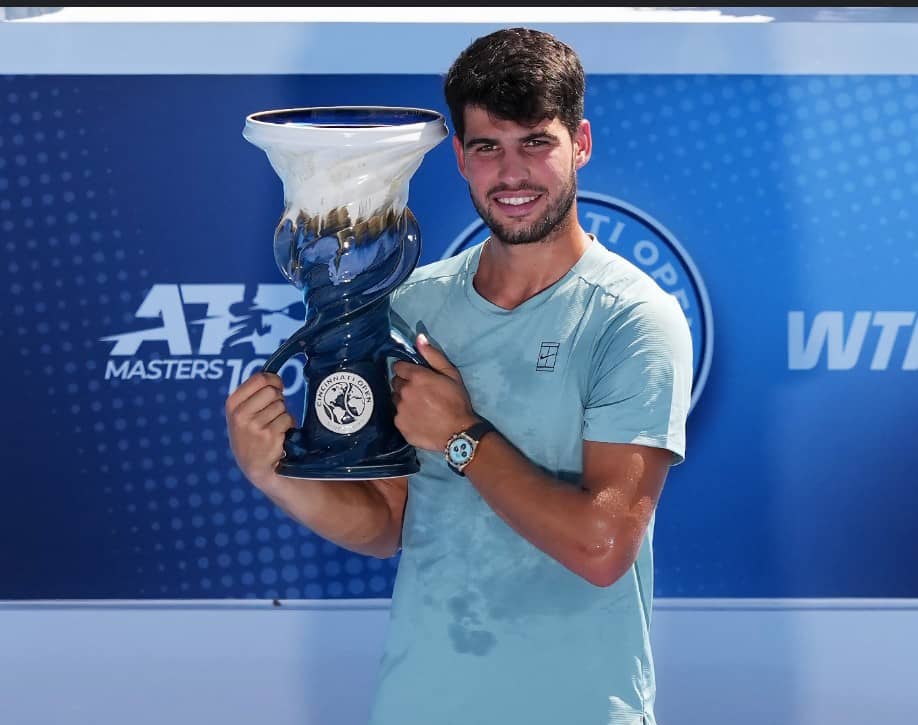 تُوِّج الإسباني كارلوس ألكاراز، بلقب بطولة سينسيناتي للتنس، بعد انسحاب حامل اللقب، الإيطالي يانيك سينر، خلال المجموعة الأولى من المباراة النهائية وكان ألكاراز متقدماً بخمسة أشواط دون مقابل عندما قرر سينر الانسحاب بسبب وعكة صحية