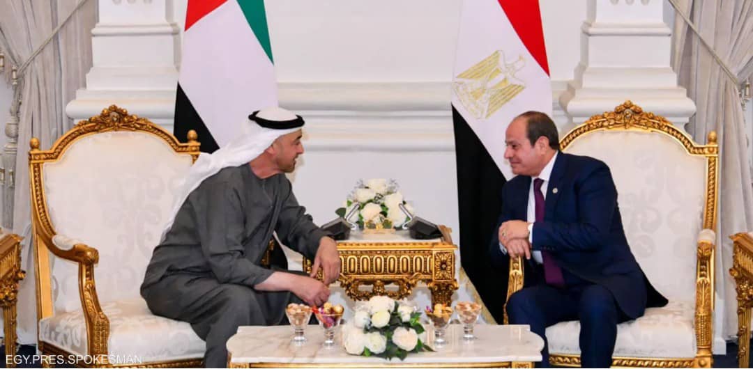 وصل الشيخ محمد بن زايد آل نهيان رئيس دولة الإمارات العربية المتحدة إلى مدينة العلمين الجديدة في زيارة أخوية إلى مصر