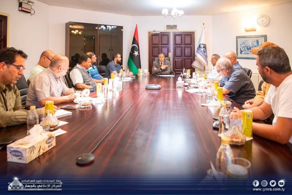 عُقد بمقر جهاز تنفيذ وإدارة مشروع النهر الصناعي، بمدينة بنغازي، اجتماع مُوسّع ضم رئيس مجلس إدارة الجهاز سعد بو مطاري، ومدراء عموم المنظومات، إلى جانب مُمثلين عن صندوق التنمية وإعادة إعمار ليبيا، وشركة جواهر التركية، المقاول المنفذ التابع للصندوق وخُصص الاجتماع لمناقشة مُقترح تغذية 20 ألف وحدة سكنية وعدد من المشروعات التنموية الواقعة غرب مدينة بنغازي بمياه النهر الصناعي، في إطار الجهود الرامية إلى دعم مشروعات الإسكان والبنية التحتية وتحسين خدمات الإمداد المائي بالمنطقة وأكد بو مطاري خلال الاجتماع على أهمية تعزيز التعاون الفني واللوجستي بين الجهاز والصندوق، مُوضحًا أن تنفيذ المشروع ممكن من خلال المسار الغربي للنهر الصناعي، دون التأثير على تدفقات المياه في المسار الشرقي، عبر إنشاء محطة ضخ مزدوجة وخزان لكسر الضغط في المحطة رقم (675+96)